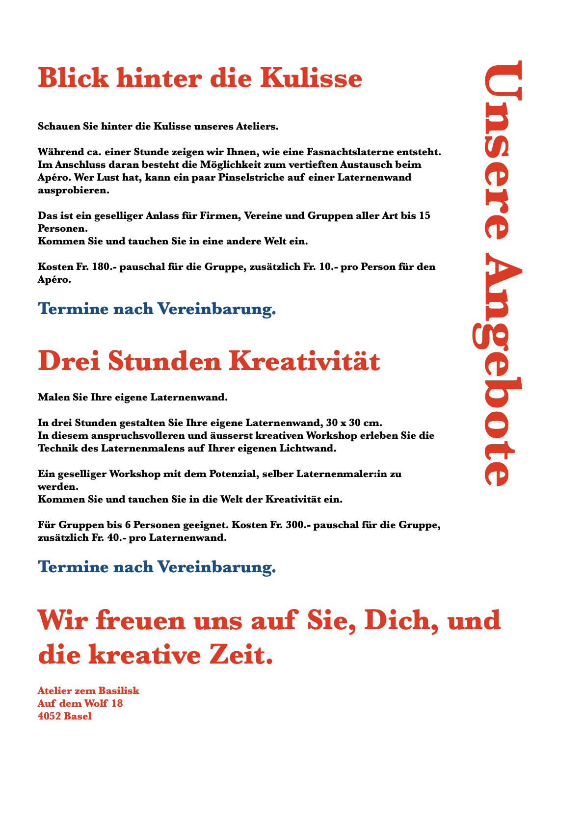 - für Schulklassen, Gruppen, Firmenanlässe, Vereine und Einzelpersonen
